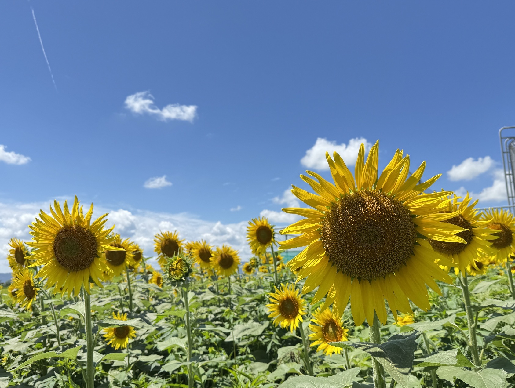 田中農園では初めてひまわり畑にチャレンジしました!きれいに咲いてくれましたので、皆さんぜひお立ち寄りください。