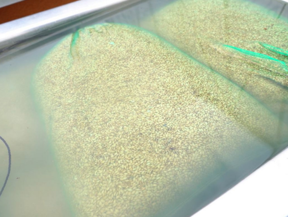 種もみについているカビや病気の原因となる細菌を消毒します、この種籾消毒は米作りの準備作業で、安全なお米づくりのためにとても重要な作業です。消毒後、水につけて芽が出るために必要な水分を吸収させます。
