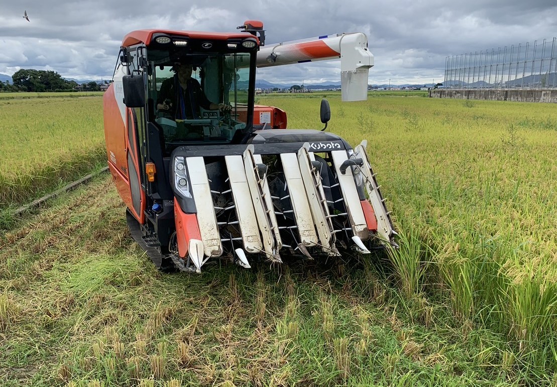 秋に入り黄金色の稲穂が垂れ下がりはじめると、刈りとり時期になります。この刈る時期も見極めが重要で、早すぎると未熟粒が多くなり収穫量に影響し、遅すぎると籾が熟れすぎて米の色つやが悪くなり味も落ちます。稲刈りはコンバインを使い刈取から脱穀まで行います。
